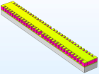 Для суперлюминесцентных диодов (СЛД) используется геометрия гребневого волновода (мезаполоска) аналогичная лазерным диодам типа Фабри-Перо. Однако для СЛД необходимо проявлять большие усилия, чтобы избежать резонансного эффекта. Существенным способом подавления нежелательной модуляции спектра является наклон структуры мезаполоска на несколько градусов. В данной работе произведено моделирование СЛД (λ=1,55 мкм) при разной конфигурации мезаполоска.