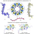 LysSi3 представляет собой лизоцим-подобную мурамидазу (семейство GH24) с бактериолитической активностью против патогенов ESKAPE группы. В рамках данной работы были получены LysSi3 и его мутантная форма W120A в С-концевом пептиде с предсказанной противомикробной активностью. С помощью РСА получены структуры этих белков и проведен их сравнительный анализ. Строение С-концевого пептида характерно структурам для противомикробных пептидов. Проведена оценка его роли в механизме действия LysSi3.