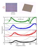 Разработана технология создания 3D-метаматериала из стопки кремниевых чипов с литографически нанесенной металлической сеткой. Используя спектроскопию Фабри-Перо, измерена дисперсия в терагерцовом диапазоне. При больших периодах сетки дисперсия соответствует плазмонной зависимости, при малых — становится сверхчувствительной к частоте излучения. Это свойство перспективно для спектроскопии и мультиплексирования.