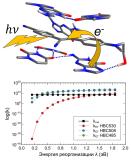 В работе охарактеризованы возбужденные состояния флуорогенов Pepper в изолированном состоянии и в комплексе с РНК. Выделены наиболее вероятные доноры электрона из состава РНК. По теории Маркуса оценены скорости фотоиндуцированного переноса электрона для флуорогенов с высоким и низким квантовым выходом флуоресценции. Показано, что фотоиндуцированный перенос электрона с гуанина G41 на флуороген является возможным каналом безызлучательного распада, снижающим яркость флуоресценции.
