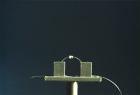 В данной работе исследуется движение небольшого кольца из оптоволокна, закрепленного у основания, с небольшим грузиком на вершине, составляется уравнение колебаний и экспериментально определяются параметры системы.